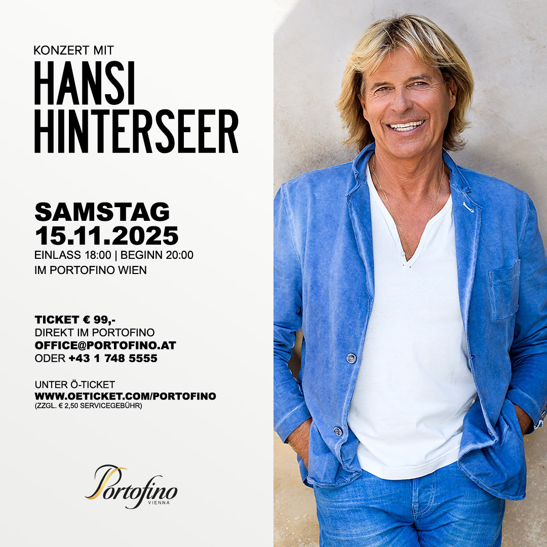 Konzert mit Hansi Hinterseer. Ticketpreis € 99,- inklusive Sektempfang. Herzlich Willkommen.