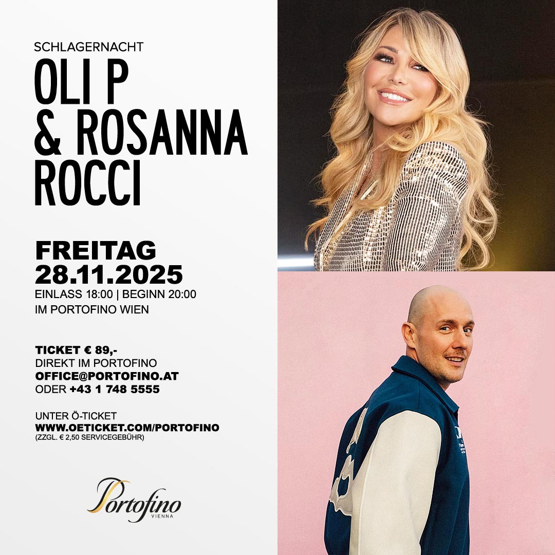 Konzert mit Oli P. & Rosanna Rocci. Ticketpreis € 89,- inklusive Sektempfang. Herzlich Willkommen.